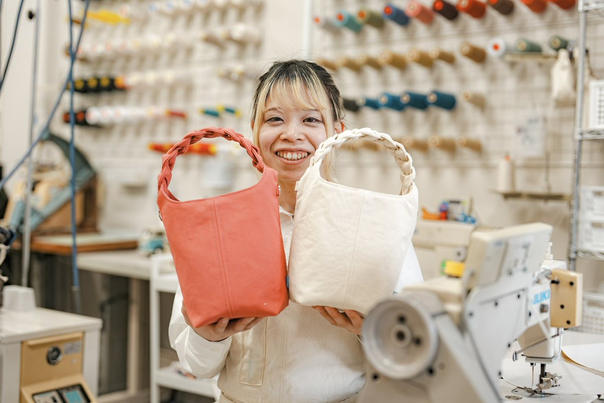 滋賀県高島市の縫製ブランド「ヌノニシタイ」が三つ編みバッグでものづくりを発信