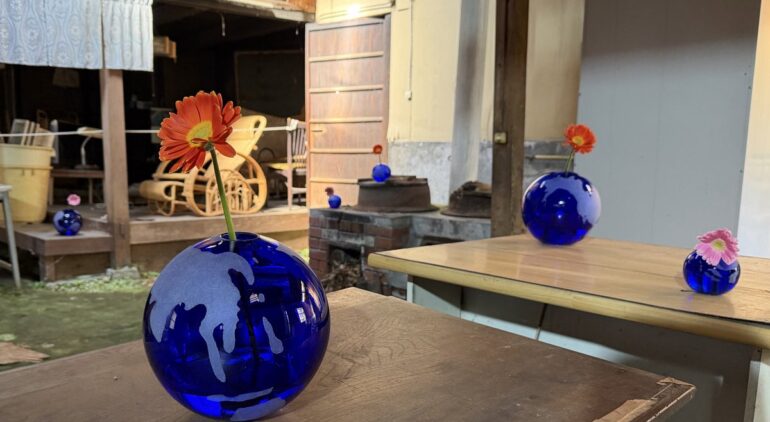 第一会場・旧福井盛弘堂「つながりの家」では、かつて和菓子店の台所に《あいまいな地球に花束を》(2025年、立体)が置かれる。青い球体に花を挿したインスタレーションは、水の循環を象徴し、観客が「地球」を抱擁するような体験を生む。Bijutsu Techoレポートでは、この空間で水と愛のつながりが最初に体感されると指摘される。