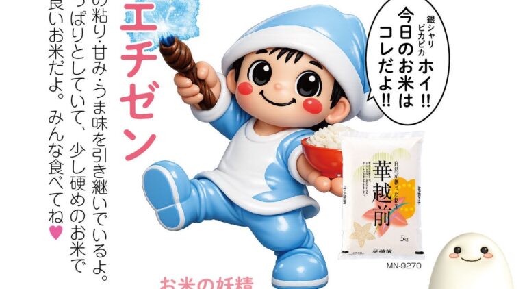 農林水産系の公表に照らし、登録年2005年、極早生、福井県を登録者とし、系譜上はコシヒカリ系の育成文脈が示される、という範囲の整理にとどまります。流通現場の紹介文では、品名のイメージとして、福井育成のコシヒカリ系より早い時期の収穫を想定した命名、粒形、食感の比喩、冷めても極端に粘りすぎない、といった消費者向けの文面が重ねられがちです。本稿は、食味の優劣を裁かず、国の公表行を先に、店頭文は補足として読み分けます。猛暑年の登熟管理は、播き時・抽穂期の年ごとのズレに左右され、一地域の一品種だけを切り取るより、年次の生育調査の方が、長期比較に向きます。直播と苗植えを併用する年は、圃場ごとの水管理の山場が二重化し、観測点を増やす必要が出やすい、とする、農業技術の一般論に、形を合わせにくい局面が生じます。極早生品種の出荷は、盆前後の観光需要と重なり、飲食店向け小ロットの引き合いが一時的に上振れしやすい、とする卸向けの言い方に、出会いやすい年と、そうでない年がある、と整理するのが無難です。