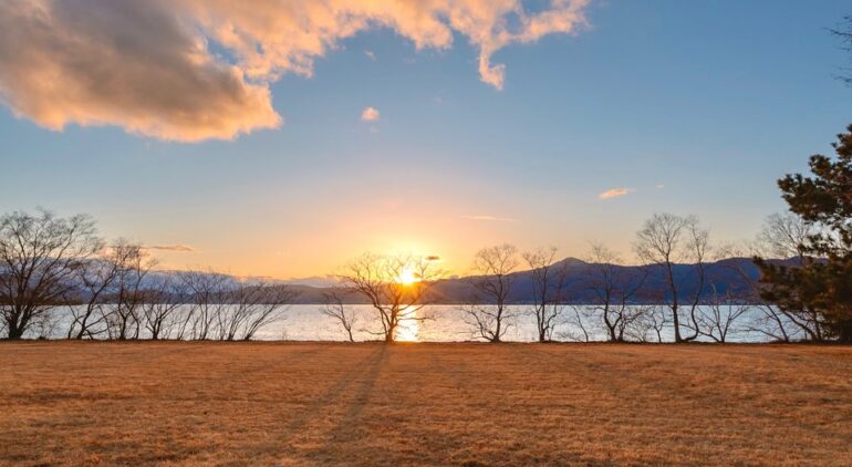 滋賀県内の湖岸で西の空を見通せる地点では、春分前後は日没時刻が18時台前半に収まる日が多い。雲量が少ない日は、太陽が山影に入る直前の数分間にコントラストが最大になる。撮影では、水平線を画面端ではなく三分割付近に置くと安定した印象になりやすい。三脚がなくても、スマートフォンの水平補正機能と連写で対応可能な場合が多い。