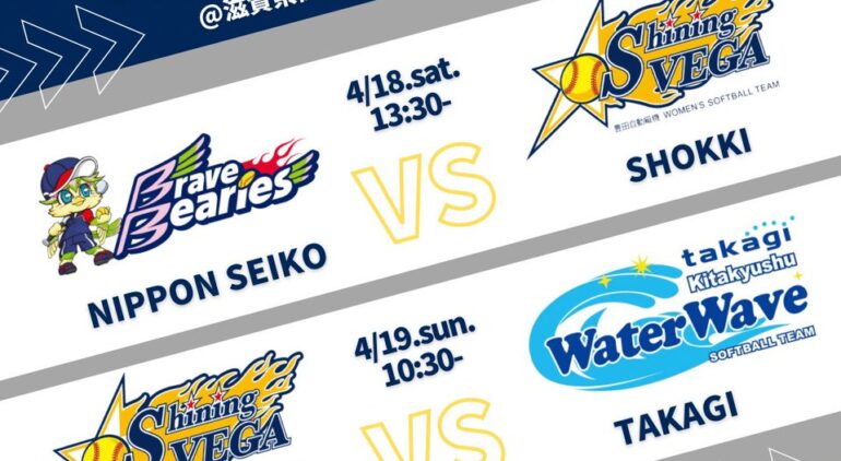 2026年4月18日土曜と19日日曜の二日間、滋賀県高島市今津町の今津スタジアムでは、日本女子ソフトボール機構が主催するニトリJD.LEAGUE2026のレギュラーシーズン・西地区第2節が開催される。会場にはトヨタレッドテリアーズ、日本精工ブレイブベアリーズ、豊田自動織機シャイニングベガ、タカギ北九州ウォーターウェーブの四球団が入り、一日二試合ずつのダブルヘッダーで順位争いを進める。球場の収容人員や席種の詳細は開催告知ごとに差があり、シーズン途中で販売方法が更新されることも珍しくない。本稿は、公表されている対戦と時刻、場内イベントの要点、リーグの制度的位置づけ、そして高島市域におけるスポーツイベントとしての文脈を、一次情報に近い日程データと公開コメントを手がかりに整理する。掲載時点の情報で、後日に修正が入りうる項目は試合時刻とイベント開始時刻に集中しうる。