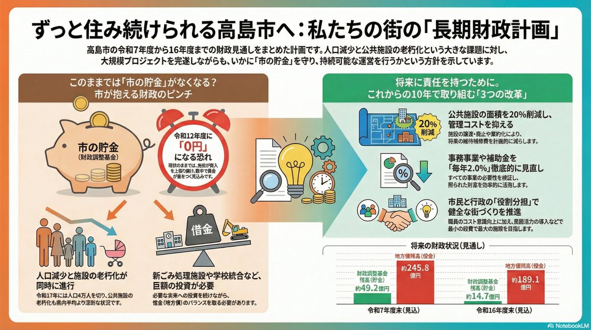 滋賀県高島市が令和8年2月に改訂した長期財政計画(令和7~16年度)を公式PDFで整理。地…