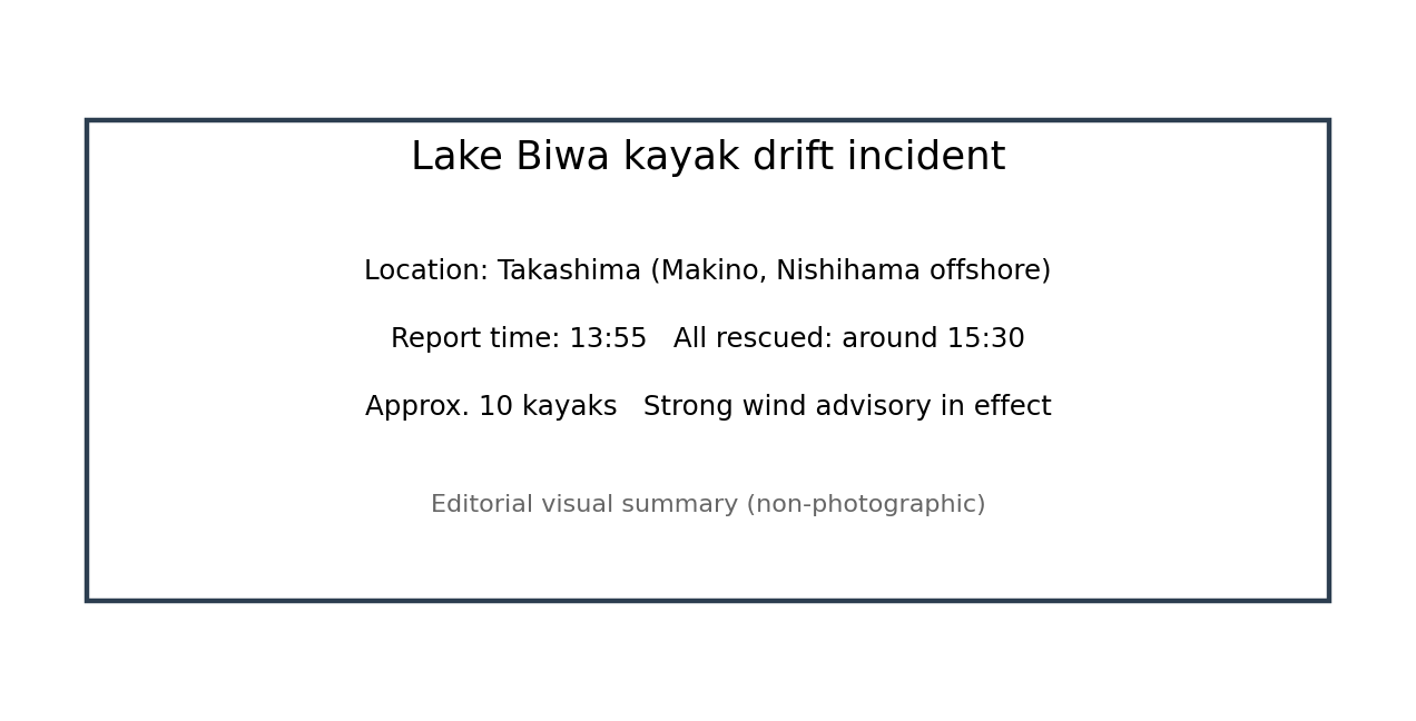 琵琶湖でカヤック漂流、強風下で全員救助 高島市マキノ町西浜沖の対応を整理