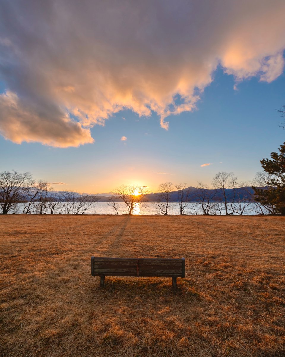 2026年3月27日、株式会社しがトコ運営のしがトコ公式Xが投稿した琵琶湖の夕焼けと湖畔ベ…